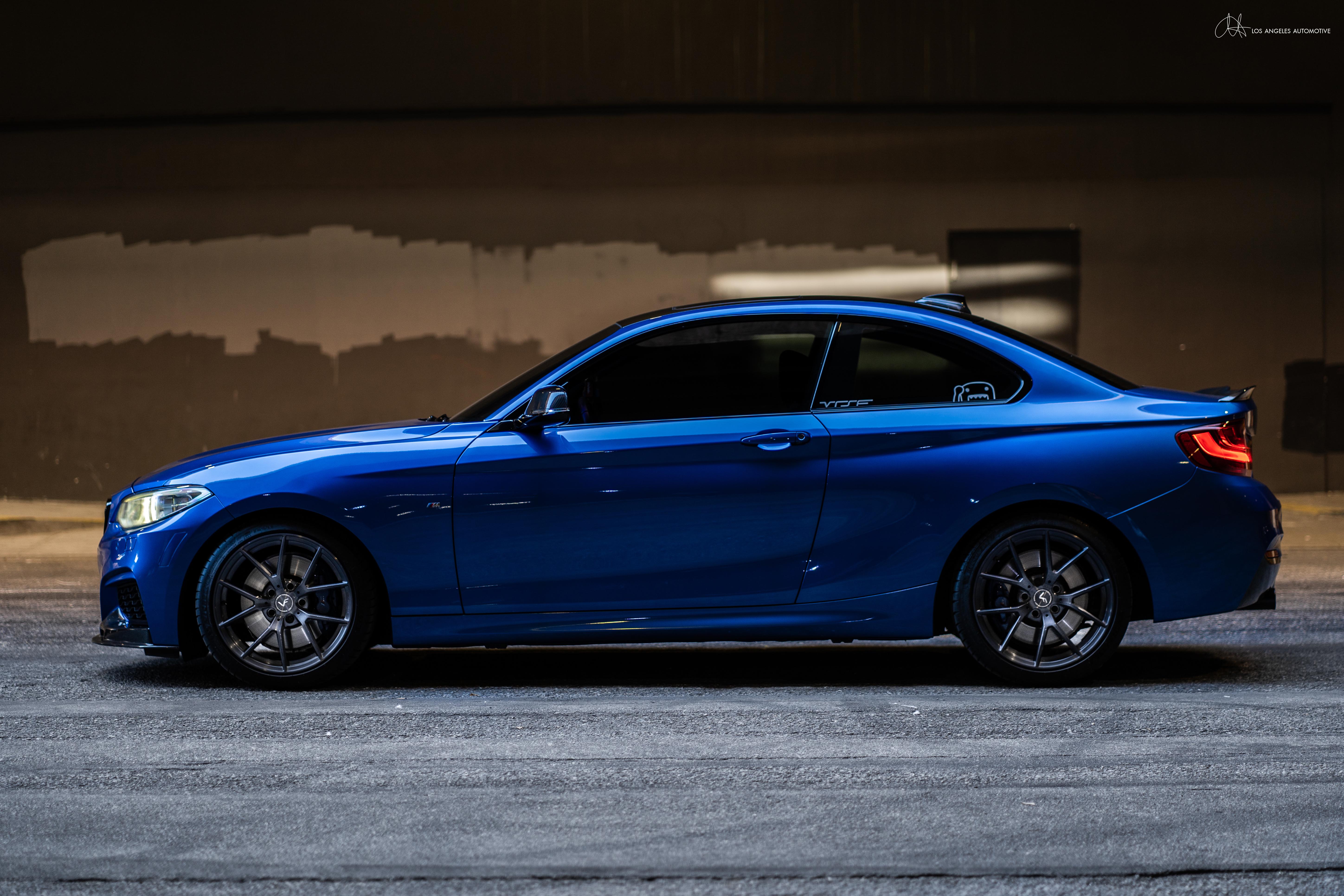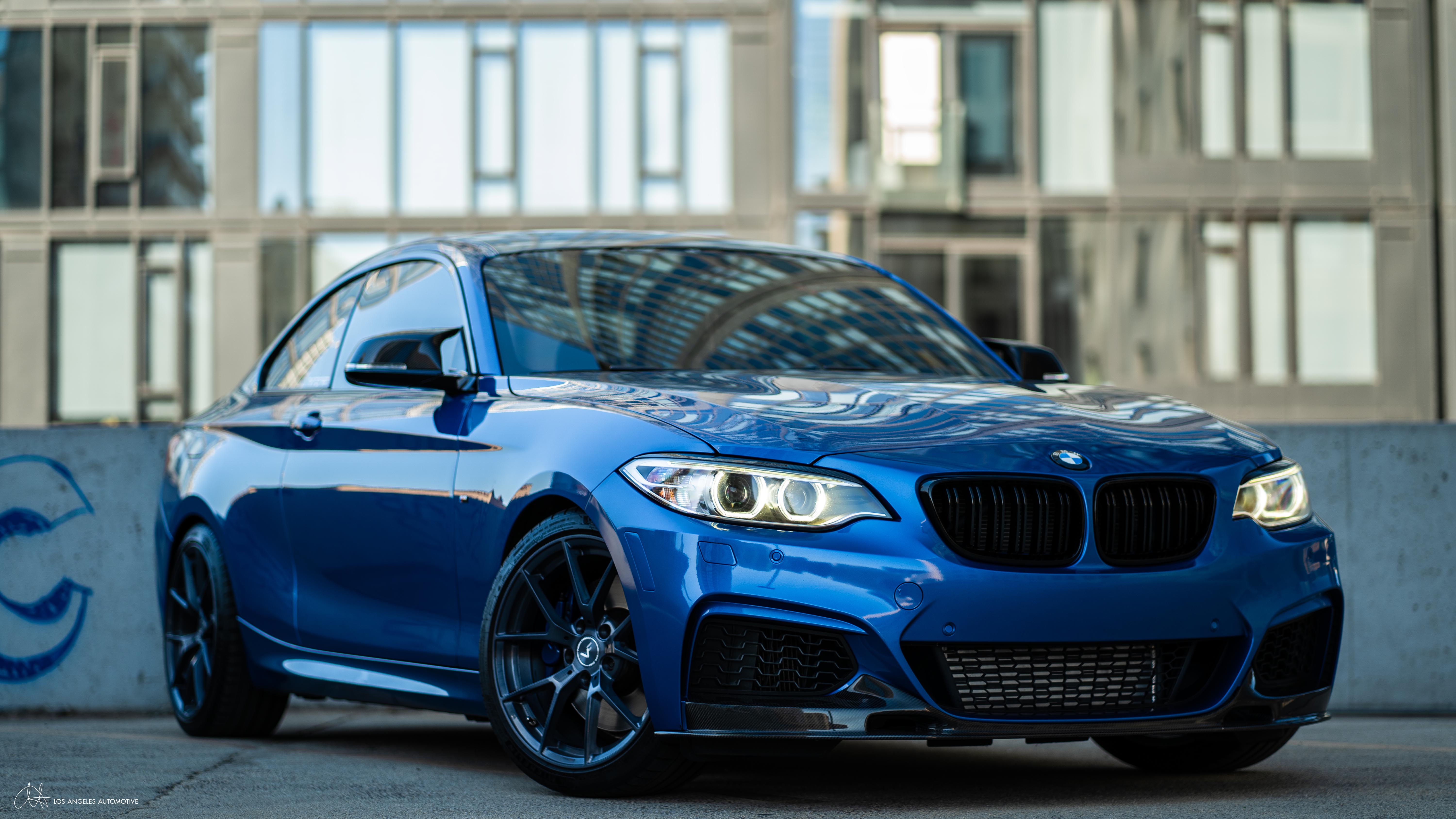 The BMW 2 Series commands attention in a deep, electric blue hue. Vision Forged wheels provide a sharp, surgical contrast to the body.