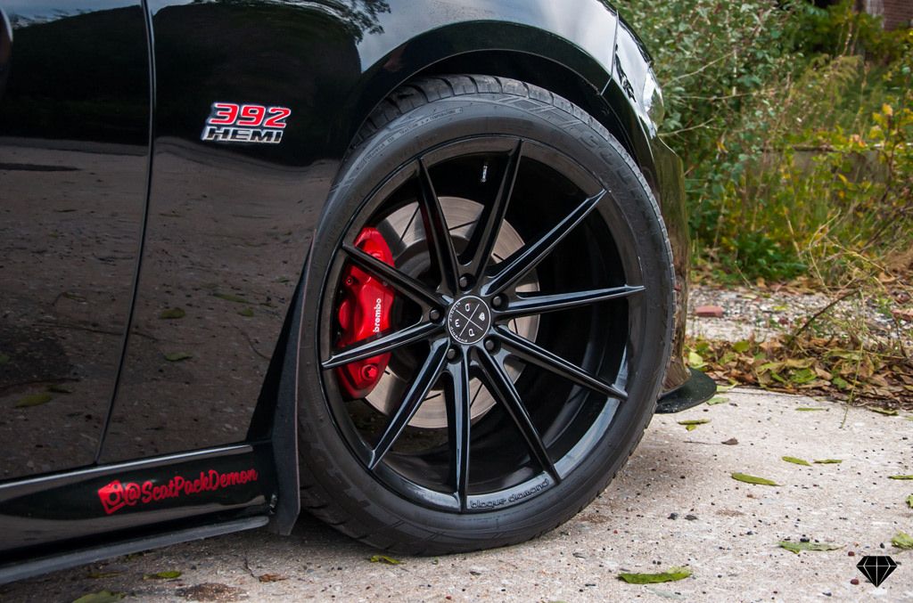 The Blaque Diamond BD-21 features sleek spokes that complement the aggressive Charger body lines. Its open design ensures excellent brake clearance while maintaining perfect visual proportions on twenty-inch wheels.