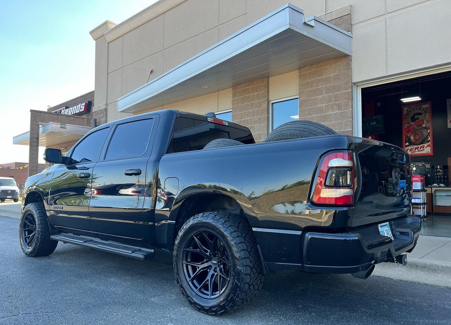 This Black Dodge Ram is running 20×10-inch Vossen HF6-4 wheels finished in Gloss Black.