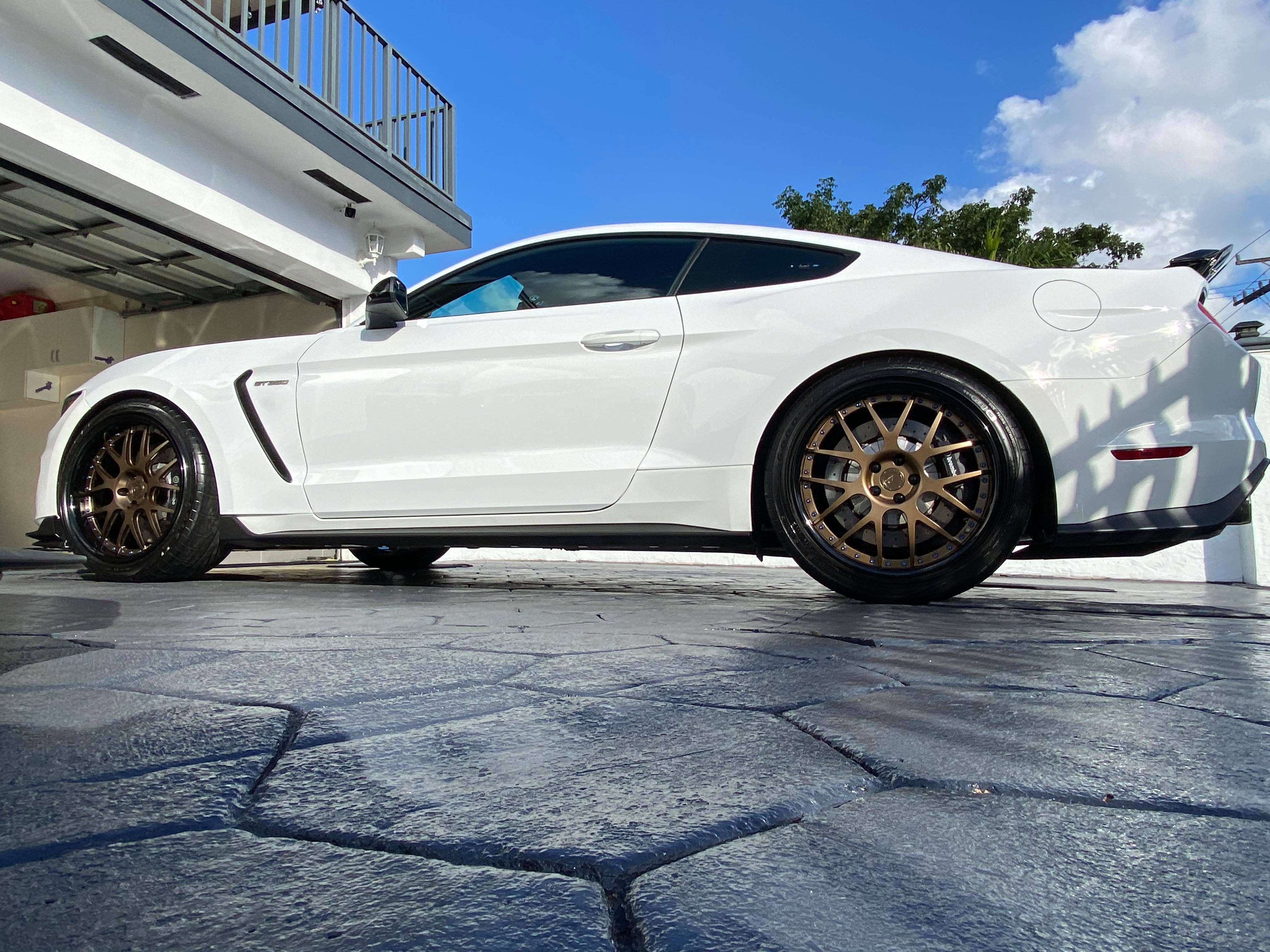 This White Ford Shelby Mustang GT350 is running 20×11 and 20×11.5-inch BC Forged LE72 wheels finished in Bronze. Paired with 295 / 305 tires.