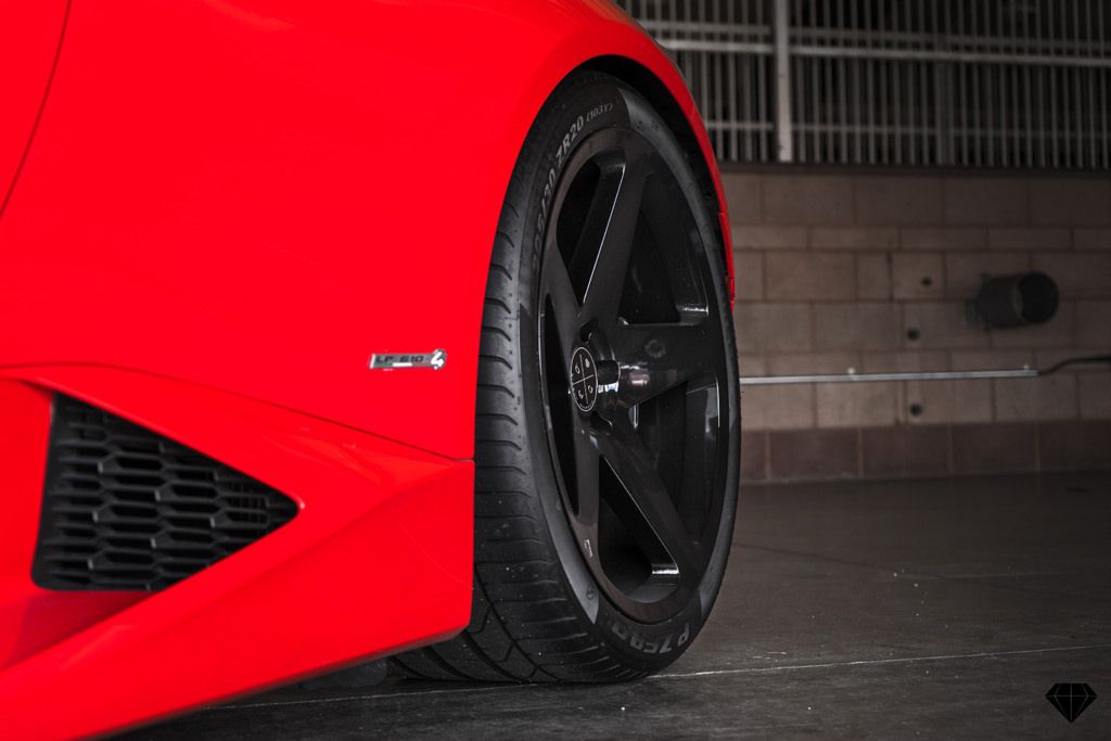 This Red Lamborghini Huracan is running 20-inch Blaque Diamond BD-15 wheels finished in Gloss Black.