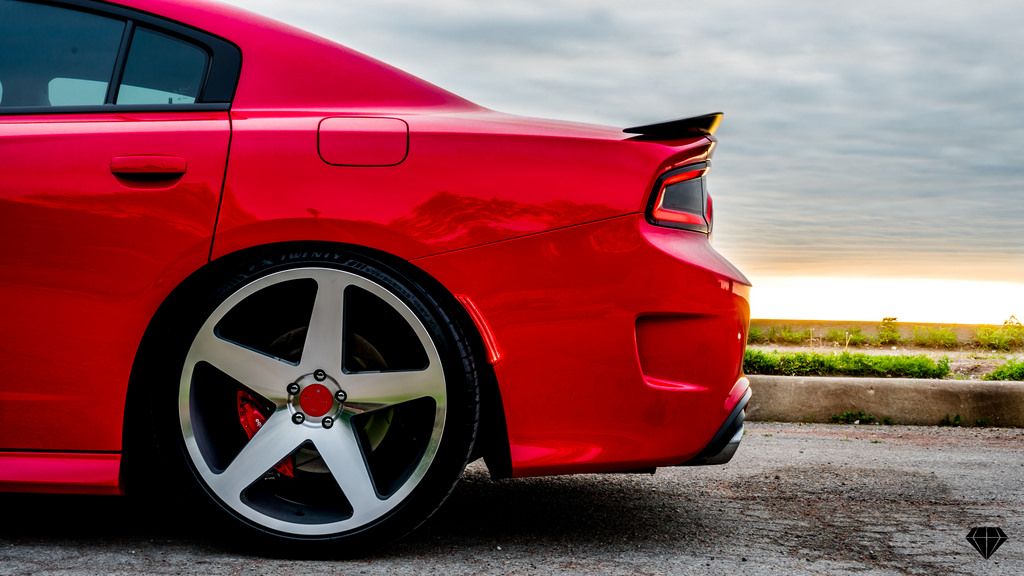 This Red Dodge Charger is running 22-inch Blaque Diamond BD-15 wheels finished in Silver with Machined Face.