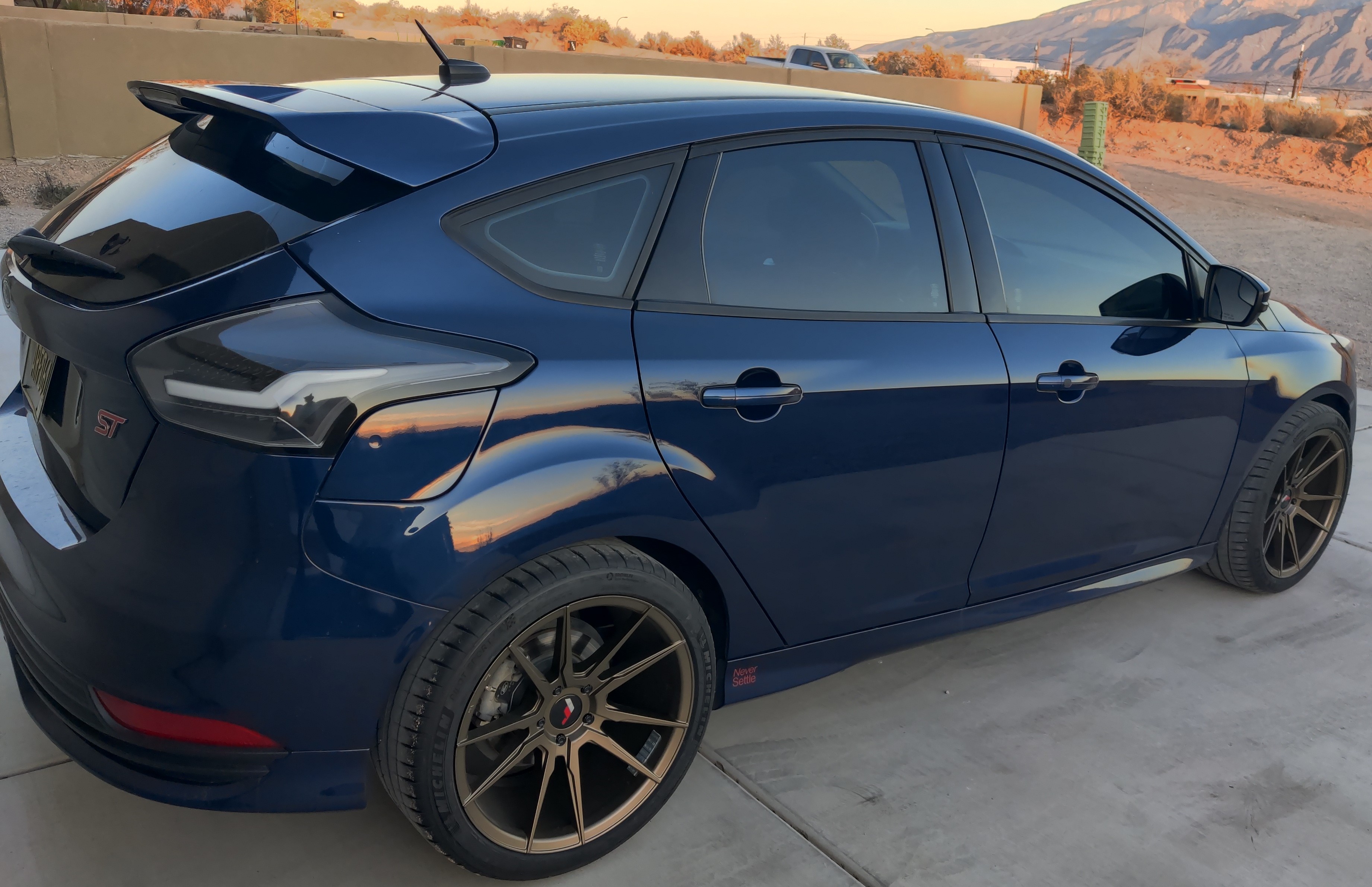 This Blue Focus ST hits every single mark for me. The Matte Bronze JR21s catch the light perfectly, turning a standard hatch into a standout piece of machinery. When those tires fill the arches that well, the car just looks meaner and more grounded.