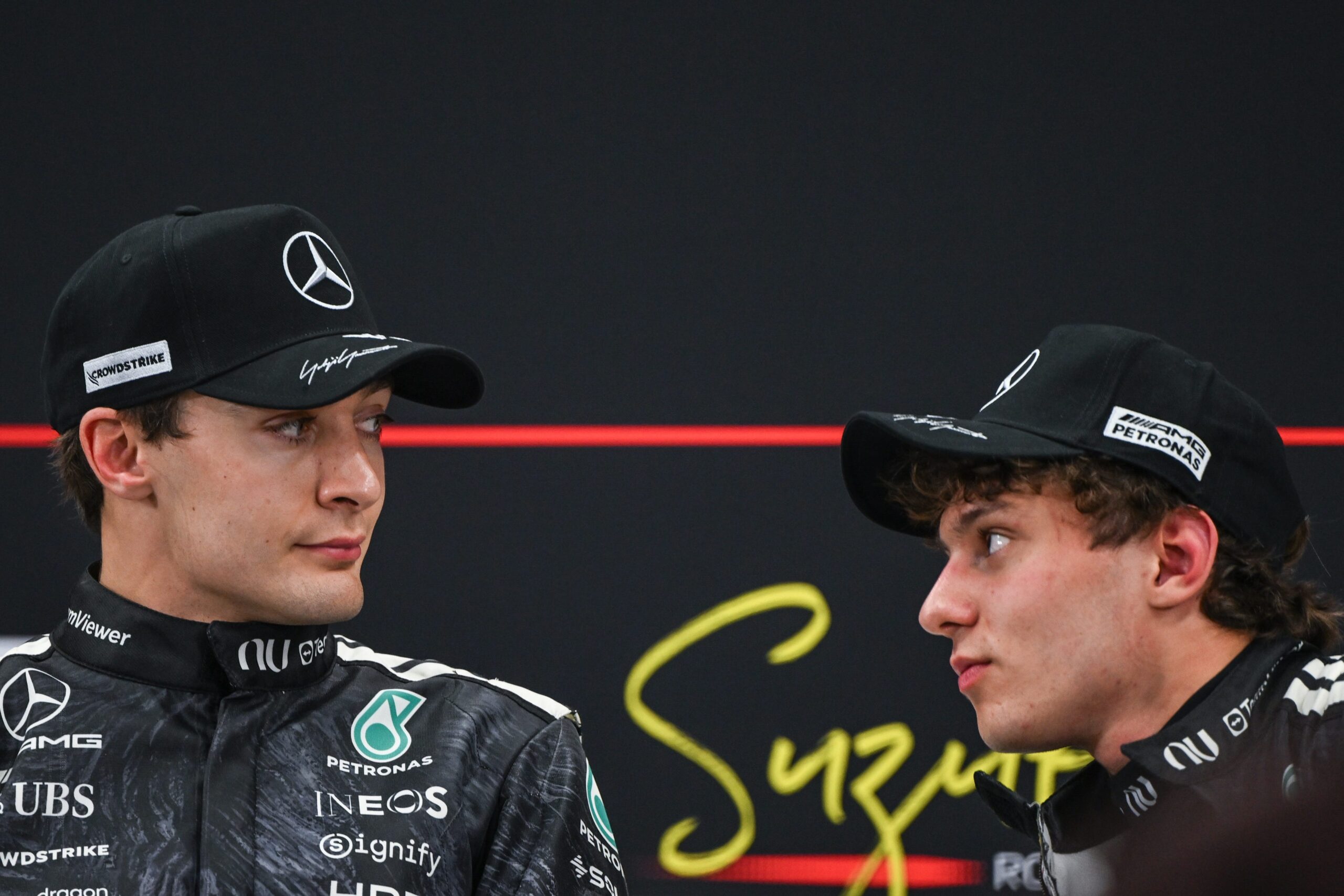 Kimi Antonelli, 19 years old and already collecting pole positions like souvenirs, put the W17 on top for the second consecutive grand prix with a time that left teammate George Russell just .068 seconds behind. That’s three front-row lockouts in three races for Brackley. The pattern isn’t emerging — it’s cemented.