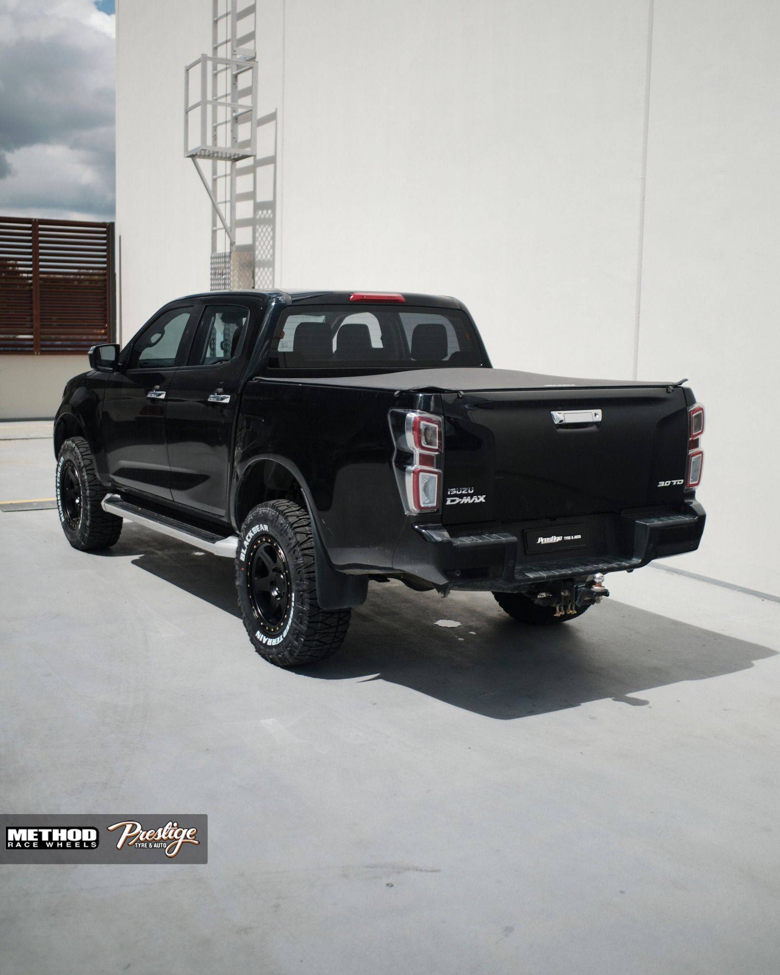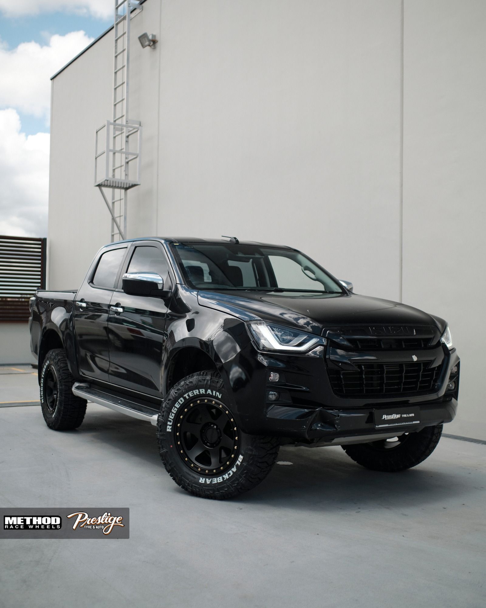This Black Isuzu D-MAX is running 18×9-inch Method 310 Con 6 wheels finished in Matte Black. Paired with 285’s tires.