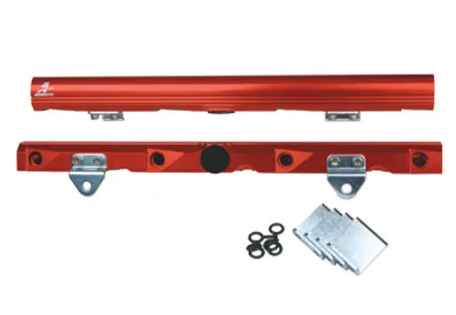 Fuel Rail – 8 AN Female O-Ring Inlets – 8 AN Female O-Ring Outlets – Aluminum – Red Anodized – Brackets Included – LS3 / L76 – GM LS-Series – Kit