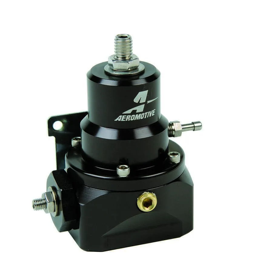 Fuel Pressure Regulator – Double-Adjustable – 3 to 21 psi – In-Line – 10 AN Female O-Ring Inlet – 10 AN O-Ring Return – 1/8 in NPT Port – Black Anodized – E85 / Gas / Diesel – Each