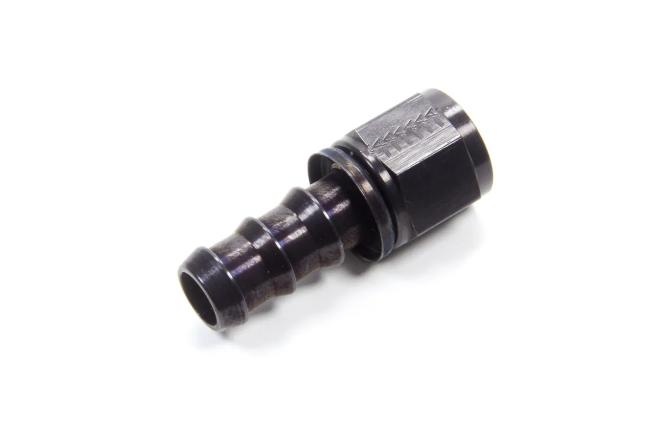 Fitting – Hose End – AQP Socketless – Straight – 10 AN Hose Barb to 10 AN Female – Aluminum – Black Anodized – Each