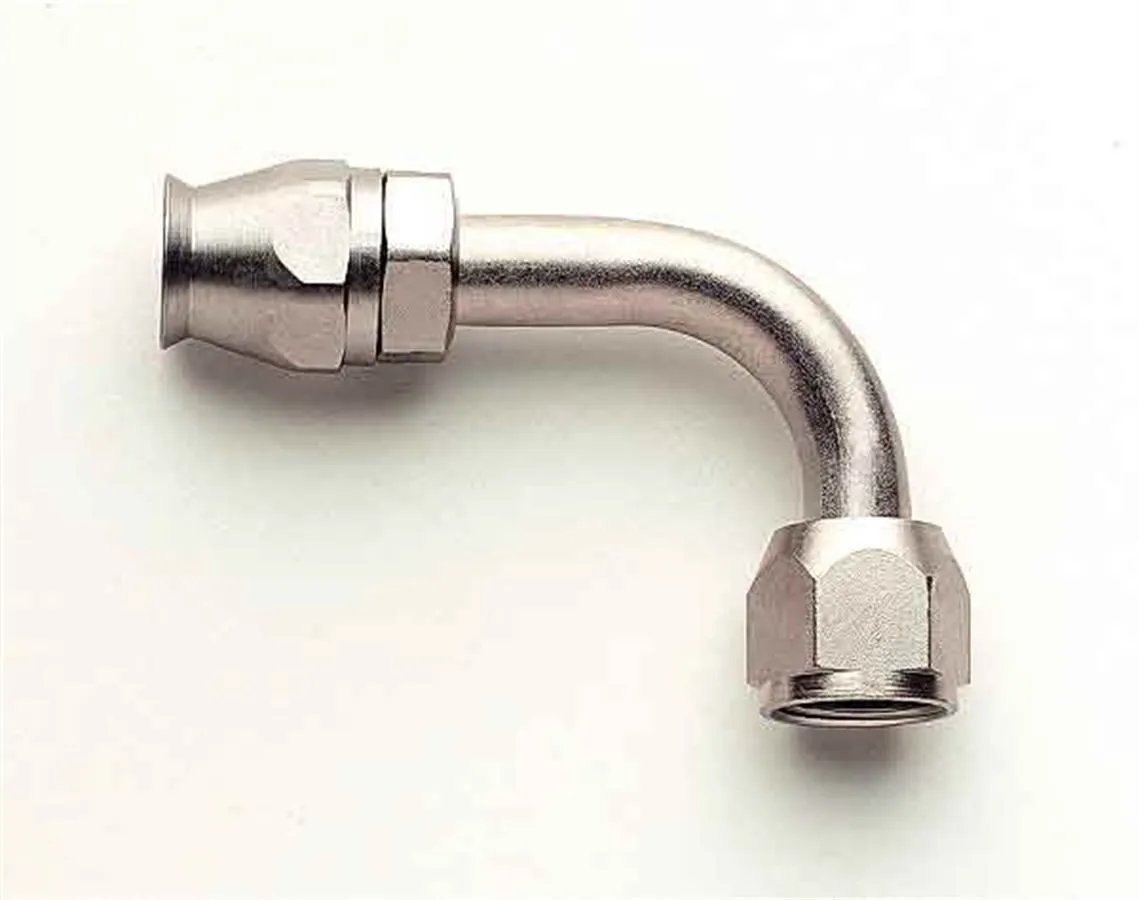 Fitting – Hose End – AC Refrigerant – 90 Degree – 8 AN Hose to 8 AN Female O-Ring – Steel – Nickel Plated – Each
