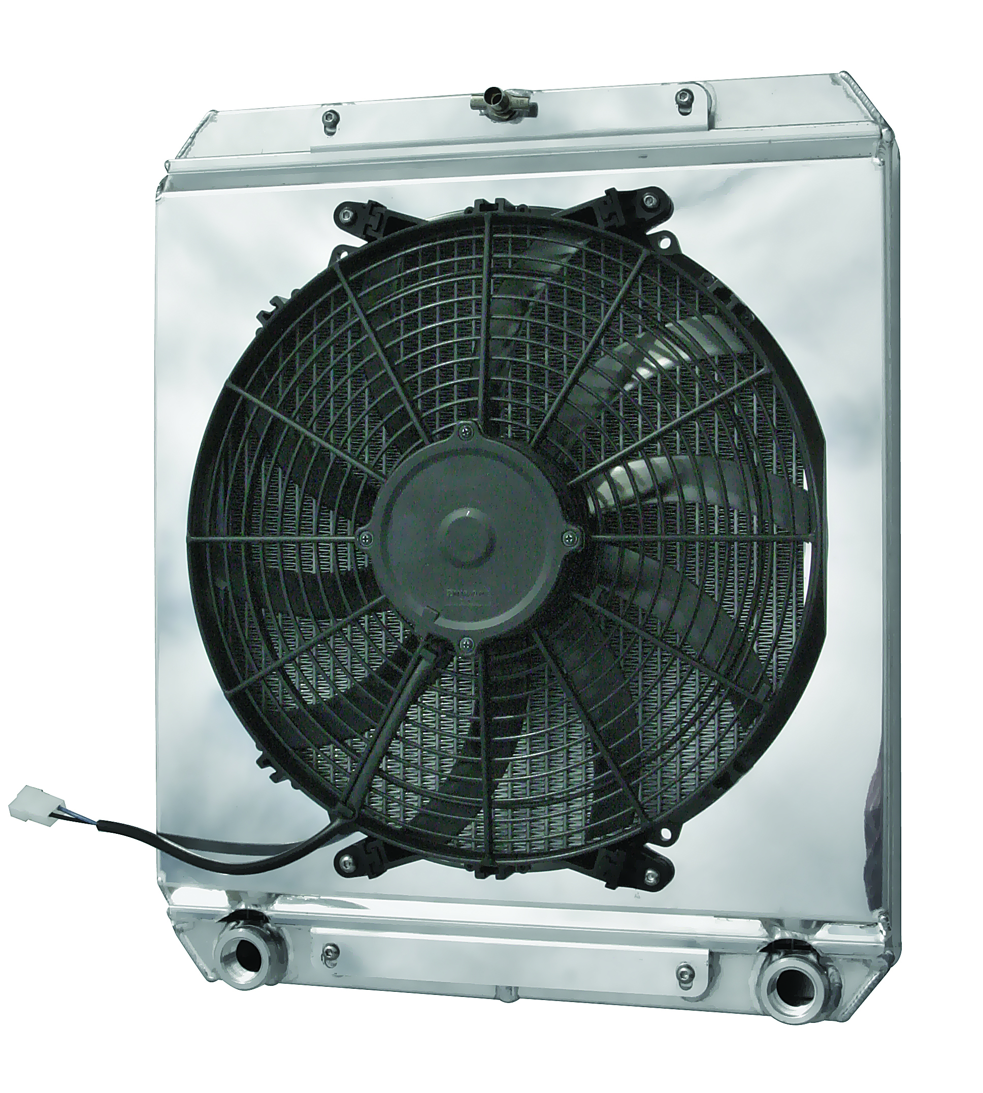 Electric Cooling Fan – 14 in Fan – Puller – 1550 CFM – 12V – Curved Blade – 20.25 x 17.25 in – Aluminum Shroud – Plastic – Black – Kit