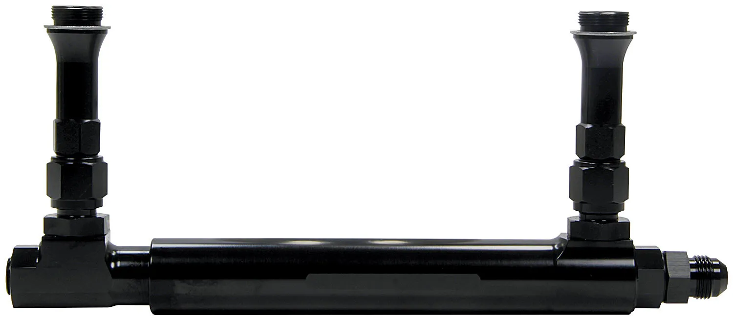 Fuel Log – Adjustable – 8 AN Male Inlet – Dual 7/8-20 in Male Outlet – 3/8 in NPT Port – Aluminum – Black Anodized – Carburetors – Each