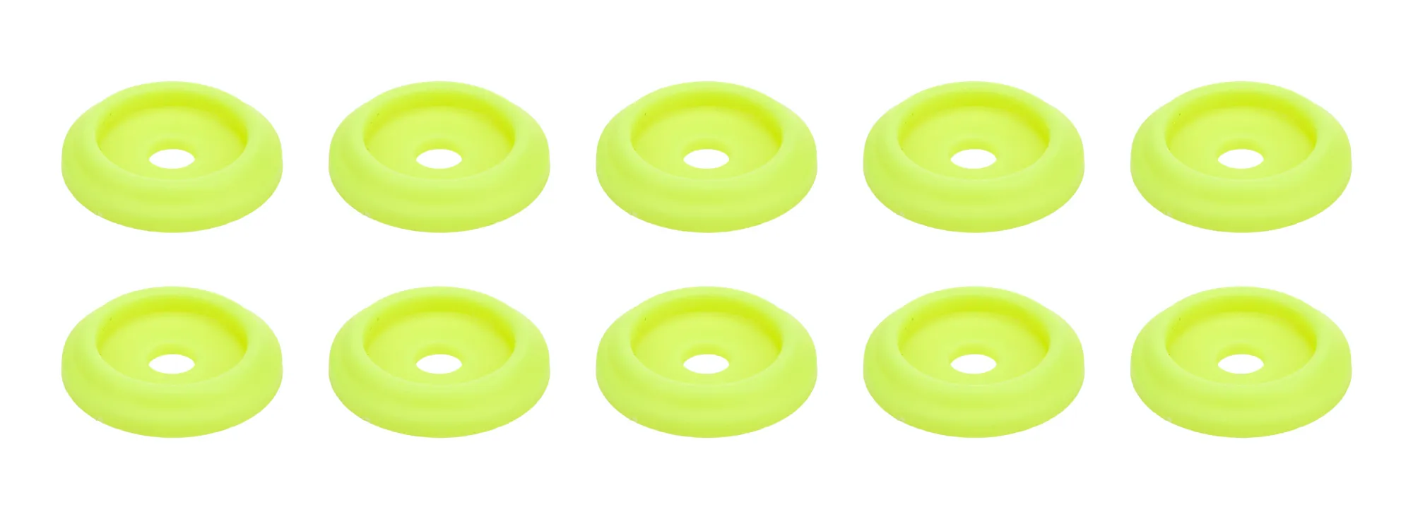 Body Bolt Washer – Countersunk – 0.25 in ID – 1.25 in OD – 0.125 in Thick – Plastic – Neon Yellow – Set of 10