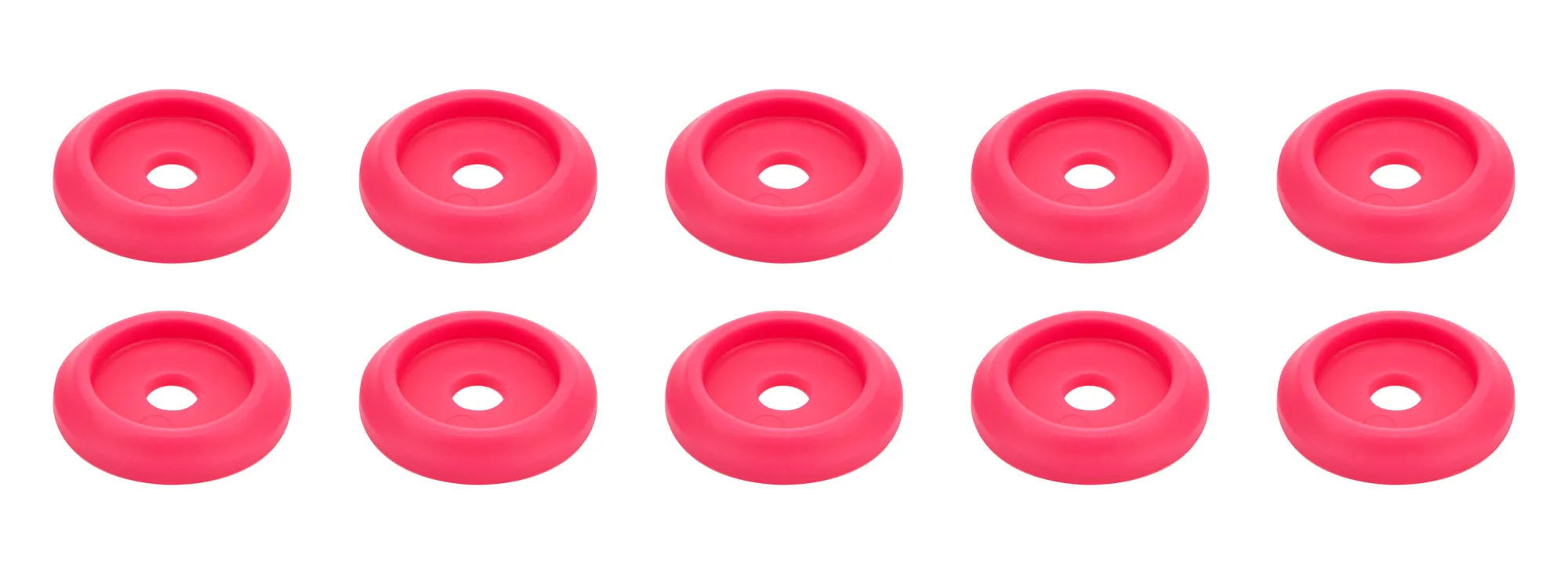 Body Bolt Washer – Countersunk – 0.25 in ID – 1.25 in OD – 0.125 in Thick – Plastic – Pink – Set of 10