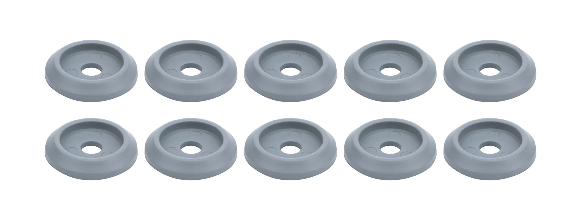 Body Bolt Washer – Countersunk – 0.25 in ID – 1.25 in OD – 0.125 in Thick – Plastic – Silver – Set of 10