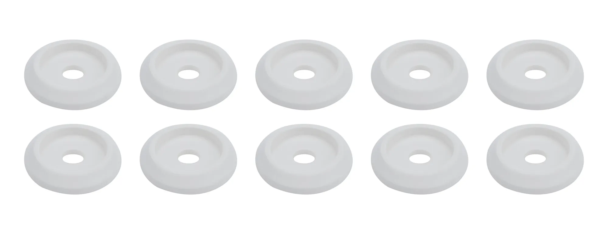 Body Bolt Washer – Countersunk – 0.25 in ID – 1.25 in OD – 0.125 in Thick – Plastic – White – Set of 10