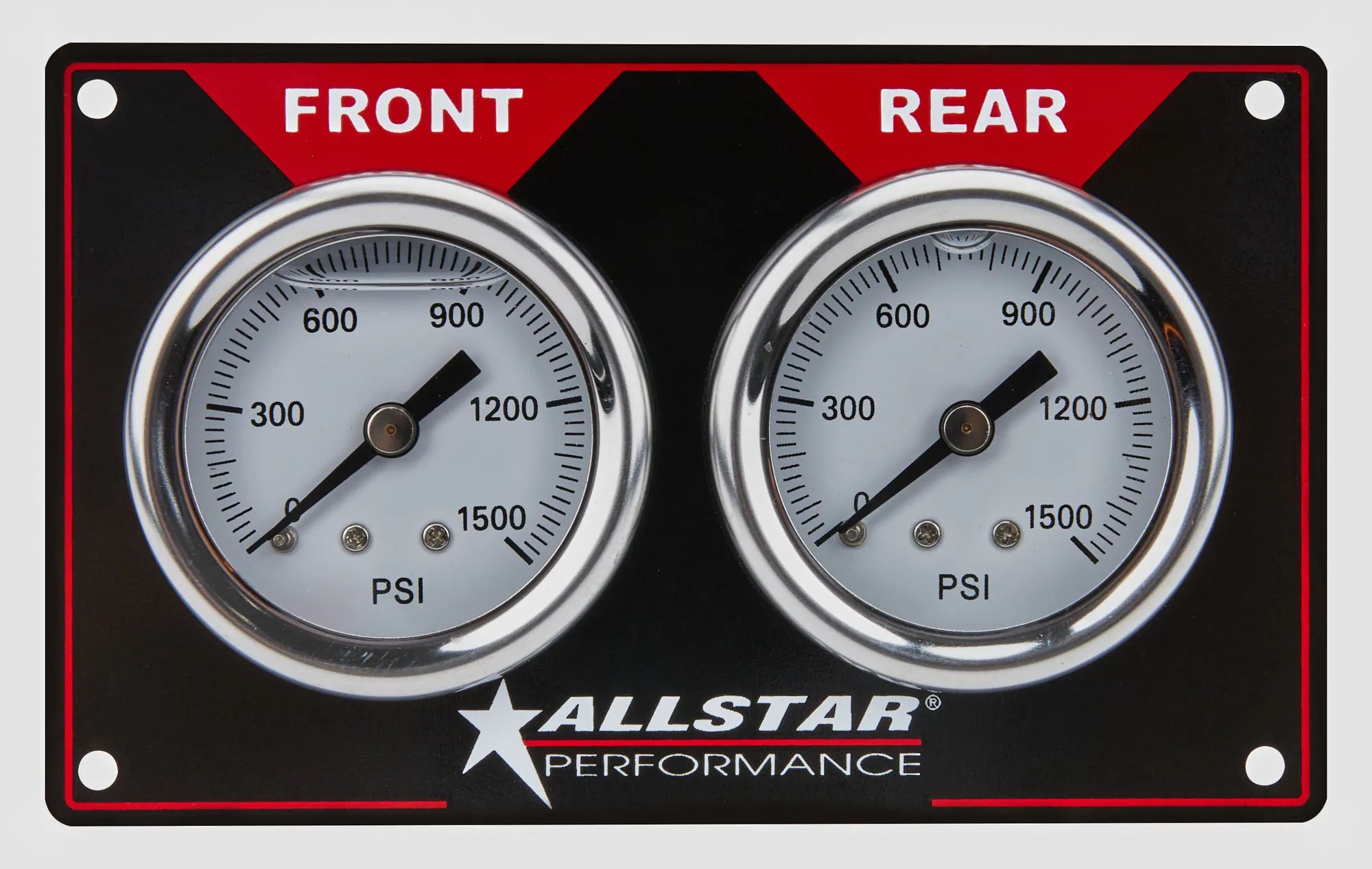 Brake Bias Gauge – Dual Gauge – 0-1000 psi – Mechanical – Analog – 1-1/2 in Diameter – White Face – Horizontal Panel – Aluminum – Kit