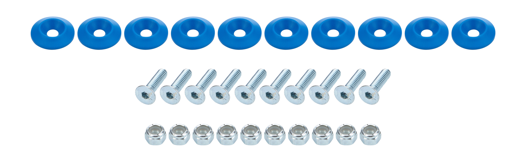 Body Bolt Kit – 1/4-20 in Thread – 1 in Long – Allen Head – Bolts / Countersunk Washers / Lock Nuts Included – Plastic / Steel – Blue / Zinc Oxide – Set of 10