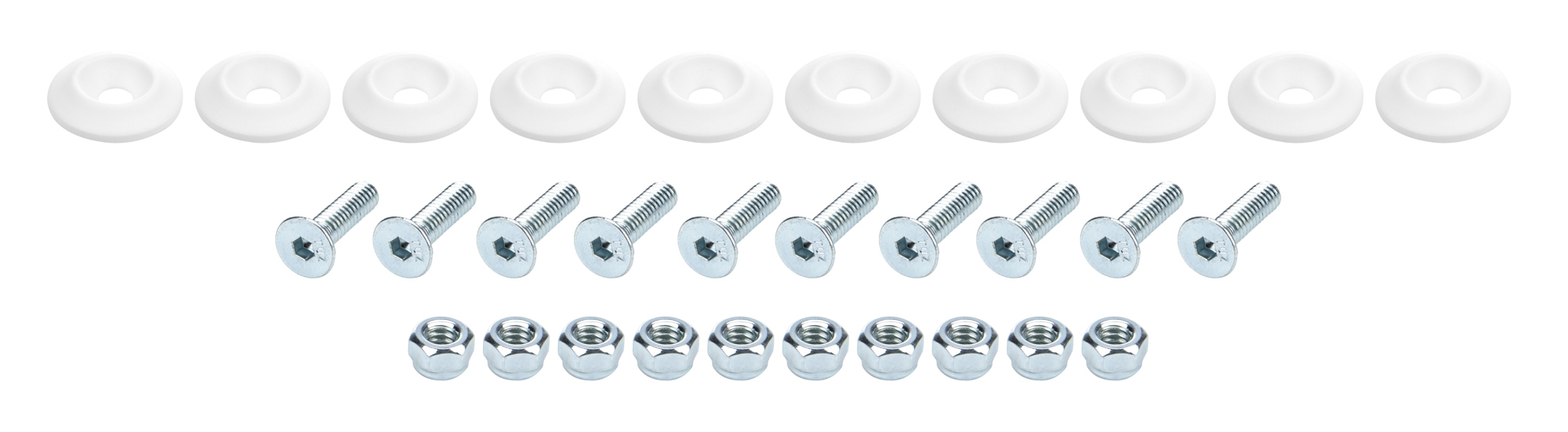 Body Bolt Kit – 1/4-20 in Thread – 1 in Long – Allen Head – Bolts / Countersunk Washers / Lock Nuts Included – Plastic / Steel – White / Zinc Oxide – Set of 10