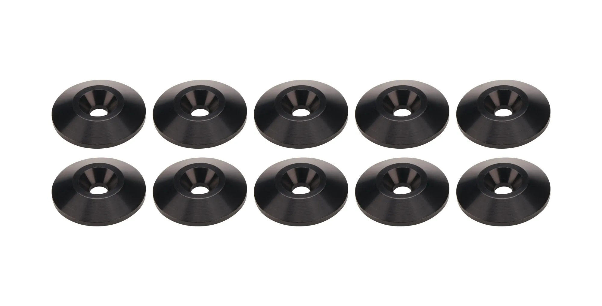 Countersunk Washer – Number 10 Hole – 1 in OD – 0.188 in Thick – Aluminum – Black Anodized – Set of 10