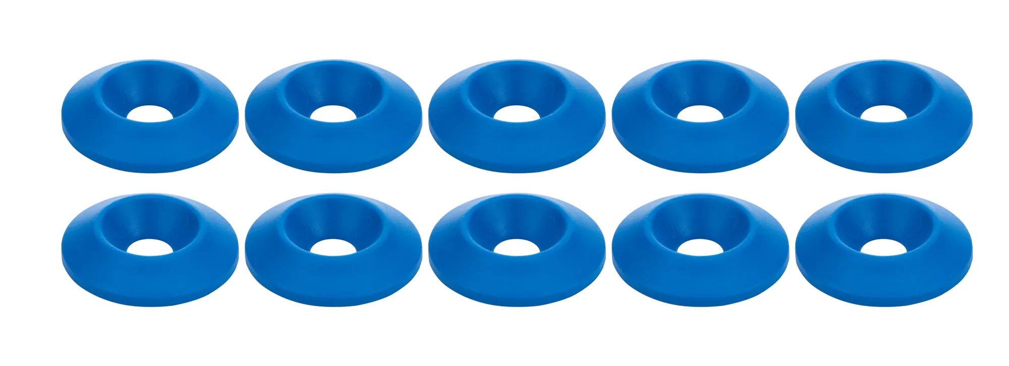 Body Bolt Washer – Countersunk – 0.25 in ID – 1 in OD – 0.188 in Thick – Plastic – Blue – Set of 10