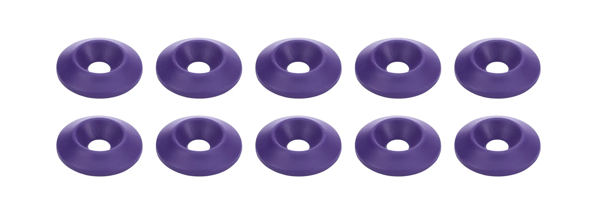 Countersunk Washer – 0.25 in ID – 1 in OD – 0.188 in Thick – Plastic – Purple – Set of 10