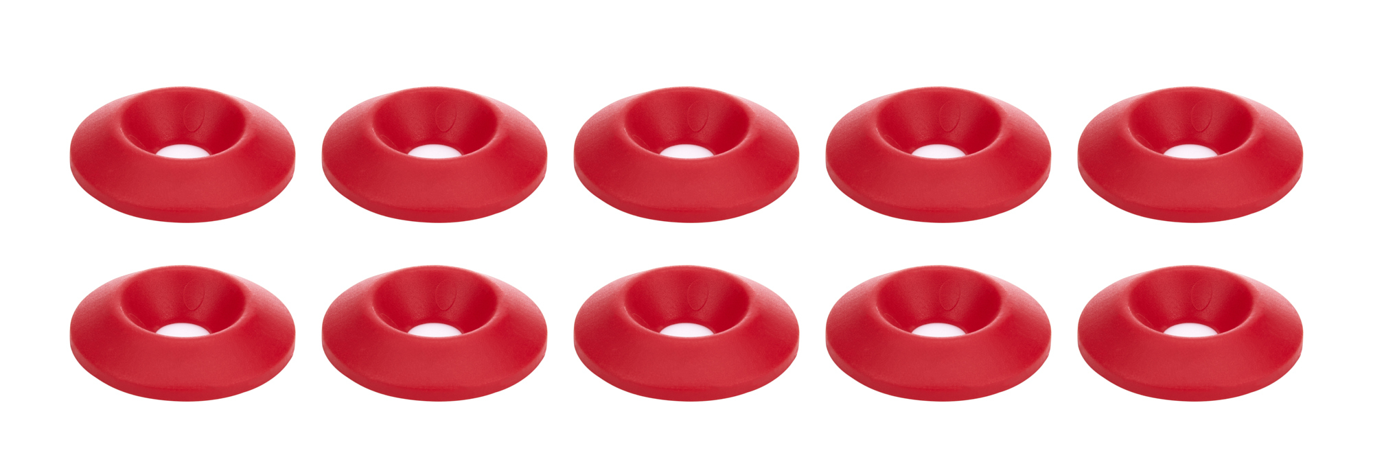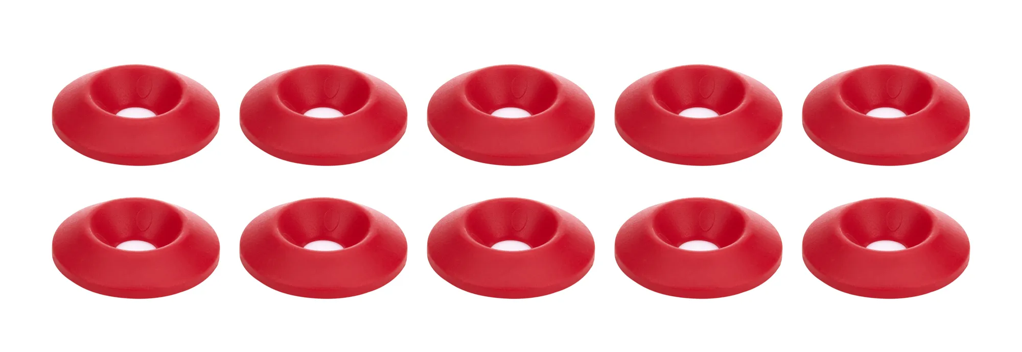 Body Bolt Washer – Countersunk – 0.25 in ID – 1 in OD – 0.188 in Thick – Plastic – Red – Set of 10
