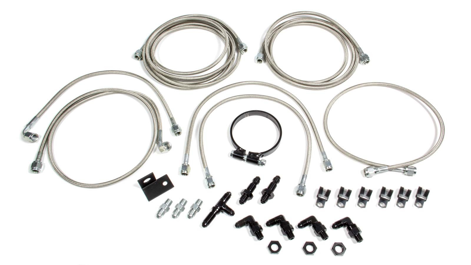 Brake Line Kit – 3 AN Hose – 4 AN Ends – Fittings / Installation Hardware – Braided Stainless – Natural – AM Calipers – Dirt Late Model – Kit