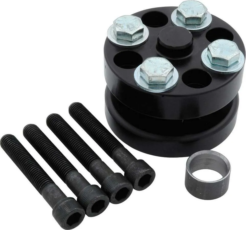 Fan Spacer – 1.5 in Thick – Bushing / Hardware Included – Aluminum – Black Anodized – Chevy V8 / Ford V8 – Each