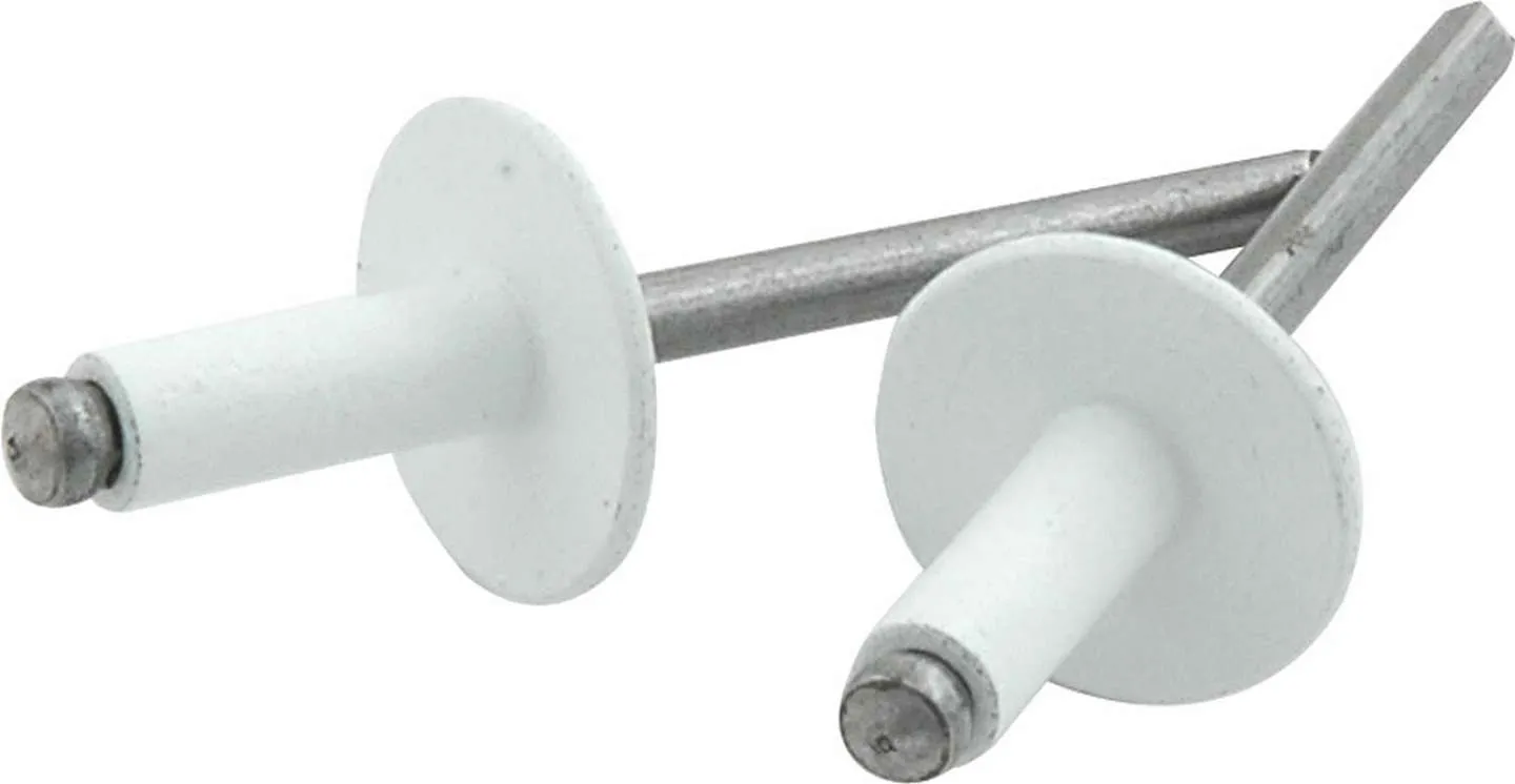 Rivet – 5/8 in Head – 3/16 in Steel Mandrel – 1/4-3/8 in Grip Range – Aluminum – White Paint – Set of 250