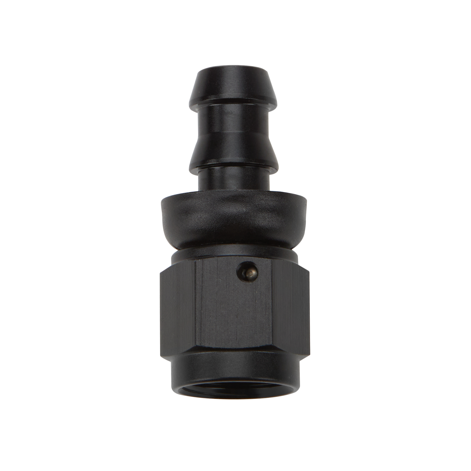 Fitting – Hose End – Straight – 4 AN Hose Barb to 4 AN Female – Aluminum – Black Anodized – Each