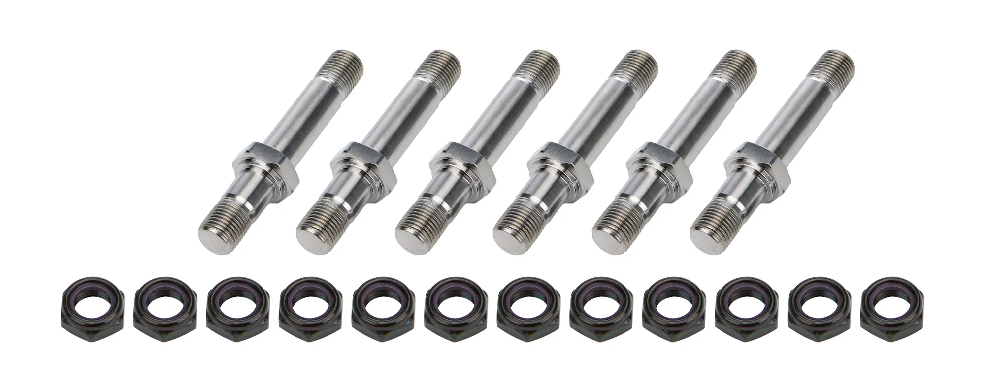Radius Rod Stud – 1/2-20 in Thread – 3.250 in Long – Hex Nuts – Steel / Titanium – Black Oxide / Natural – Set of 6