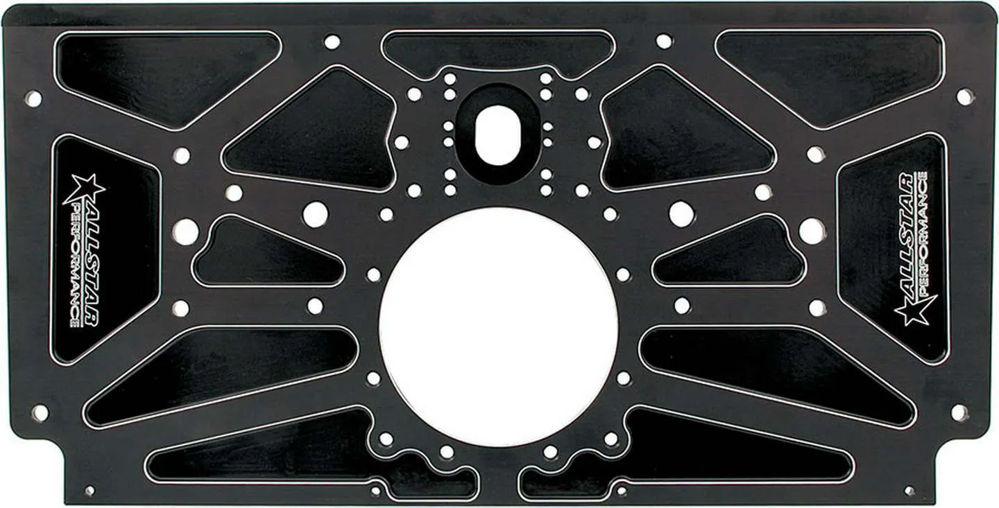 Motor Plate – Rear – 24.625 x 120.438 x 0.375 in – Aluminum – Black Anodized – Small Block Chevy – Sprint Car – Each