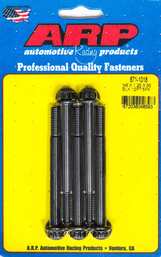 Bolt – 8 mm x 1.25 Thread – 85 mm Long – 12 mm 12 Point Head – Chromoly – Black Oxide – Universal – Set of 5