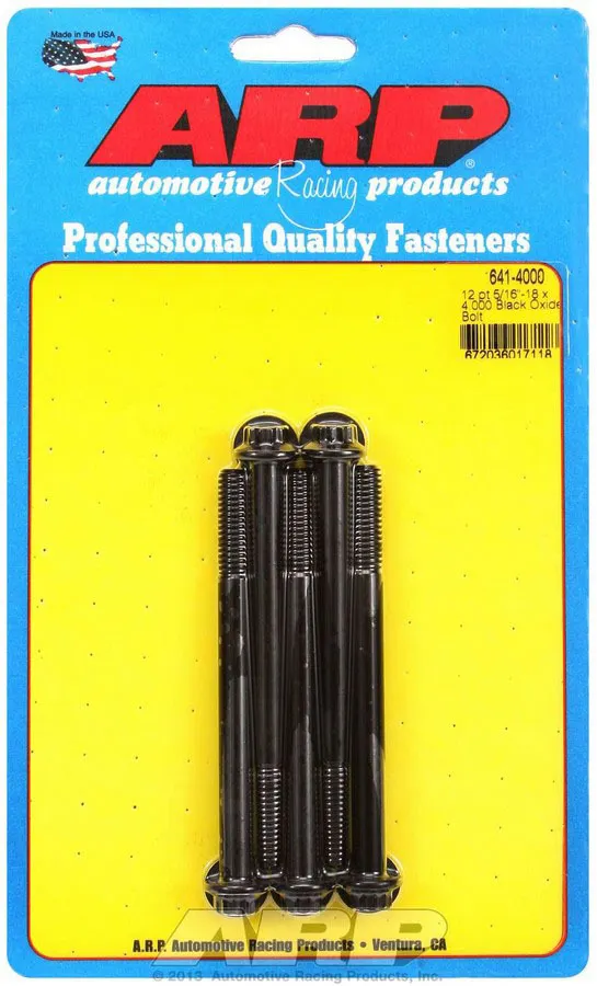 Bolt – 5/16-18 in Thread – 4 in Long – 3/8 in 12 Point Head – Chromoly – Black Oxide – Universal – Set of 5