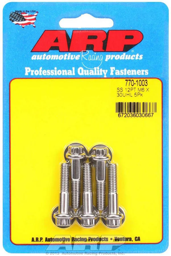 Automotive Racing Products (ARP) started in 1968, in Southern California. Their product line includes everything from engine and driveline fasteners for OEM replacement parts to exotic specialty hardware for the Formula 1, Indycar, NASCAR, NHRA Drag Racing, and Marine Applications. They produce a number of specialty products like cylinder head fastener kits, connecting rod bolts, exhaust manifold/header fastener kits, oil pan fastener kits, piston ring compressors, and more.