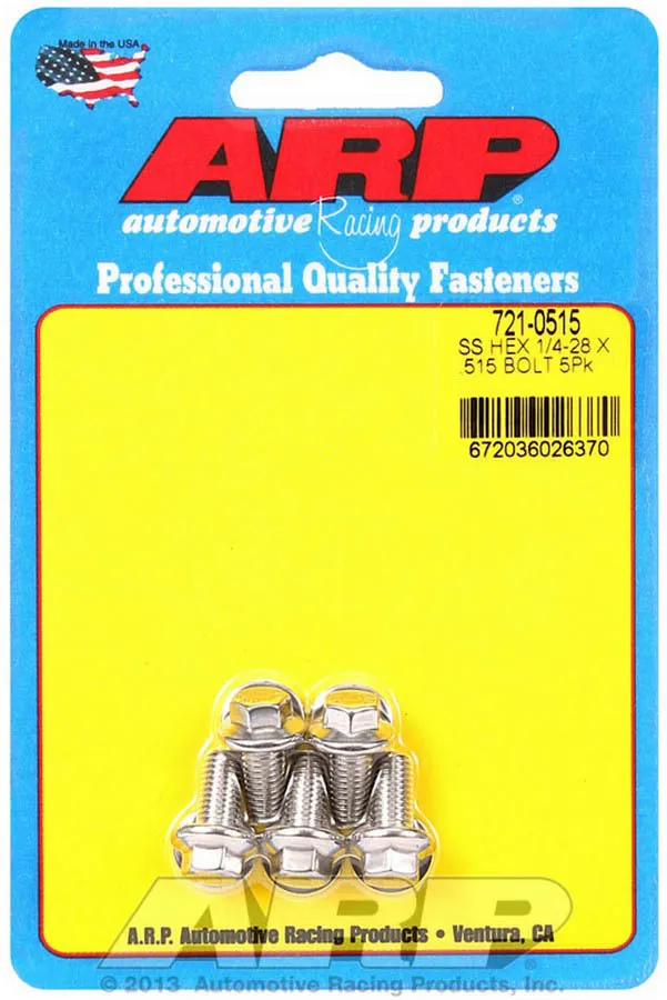 Automotive Racing Products (ARP) started in 1968, in Southern California. Their product line includes everything from engine and driveline fasteners for OEM replacement parts to exotic specialty hardware for the Formula 1, Indycar, NASCAR, NHRA Drag Racing, and Marine Applications. They produce a number of specialty products like cylinder head fastener kits, connecting rod bolts, exhaust manifold/header fastener kits, oil pan fastener kits, piston ring compressors, and more.
