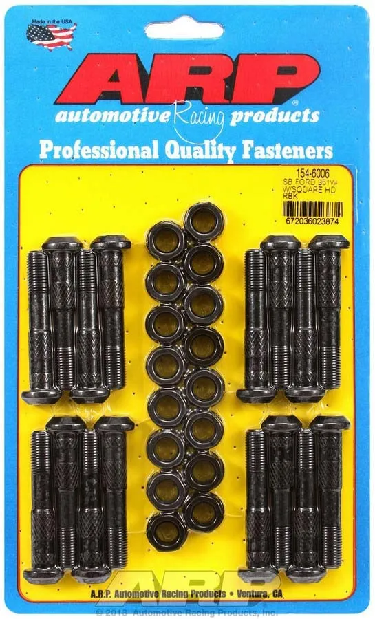 Automotive Racing Products (ARP) started in 1968, in Southern California. Their product line includes everything from engine and driveline fasteners for OEM replacement parts to exotic specialty hardware for the Formula 1, Indycar, NASCAR, NHRA Drag Racing, and Marine Applications. They produce a number of specialty products like cylinder head fastener kits, connecting rod bolts, exhaust manifold/header fastener kits, oil pan fastener kits, piston ring compressors, and more.