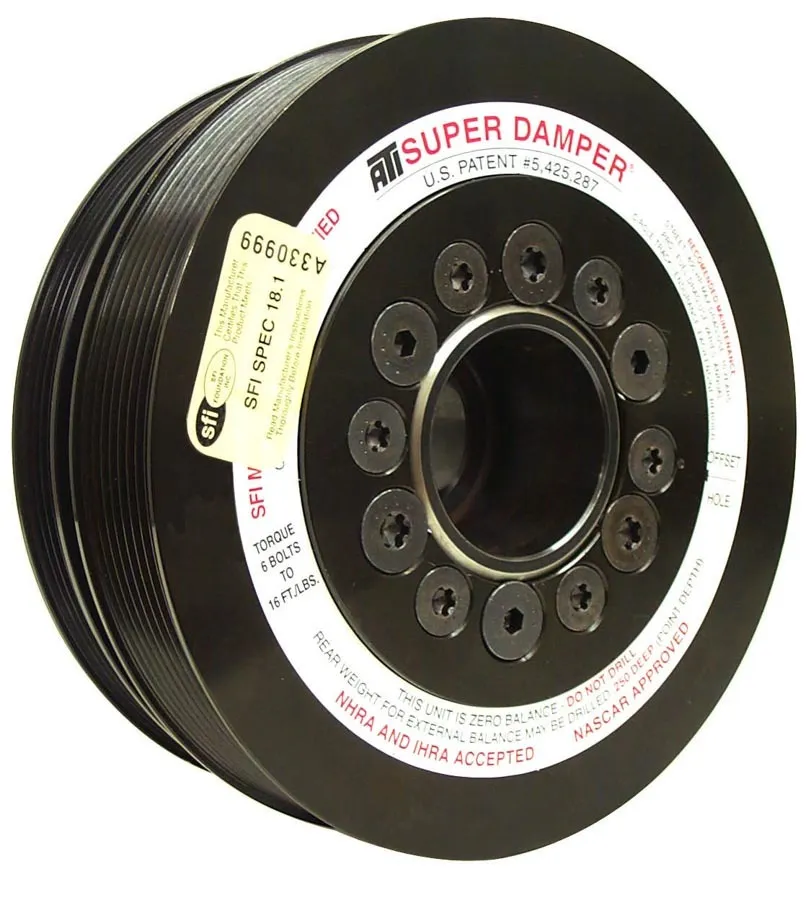Harmonic Balancer – Serpentine Super Damper – 7.425 in OD – SFI 18.1 – Steel – Black Oxide – Internal Balance – Small Block Chevy – Each