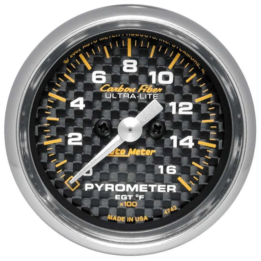 EGT Gauge – Carbon Fiber – 0-1600 Degree F – Electric – Analog – Full Sweep – 2-1/16 in Diameter – Carbon Fiber Look Face – Each