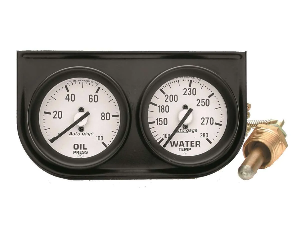 Gauge Panel Assembly – Auto Gage – Analog – Oil Pressure / Water Temperature – 2-1/16 in Diameter – White Face – Kit