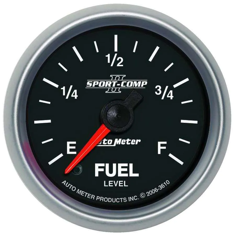 Fuel Level Gauge – Sport-Comp II – 0-280 ohm – Electric – Analog – Full Sweep – 2-1/16 in Diameter – Programmable – Black Face – Each