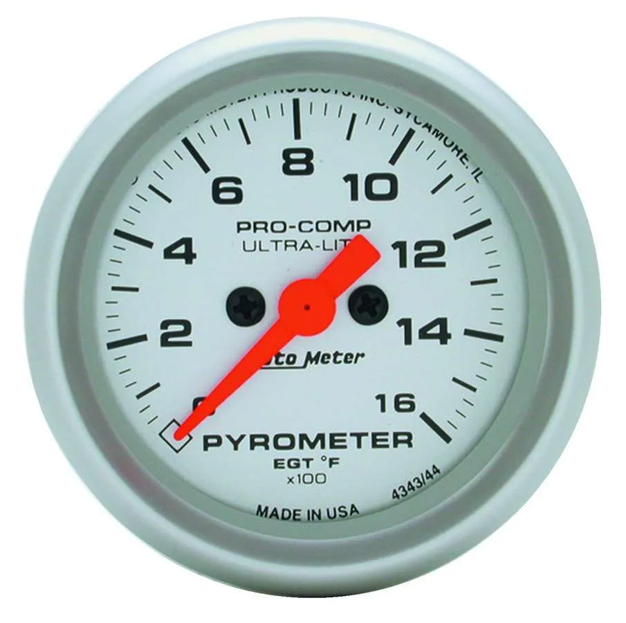 EGT Gauge – Ultra-Lite – 0-1600 Degree F – Electric – Analog – Full Sweep – 2-5/8 in Diameter – Silver Face – Each