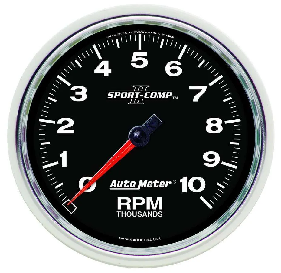Tachometer – Sport-Comp II – 10000 RPM – Electric – Analog – 5 in Diameter – Dash Mount – Black Face – Each