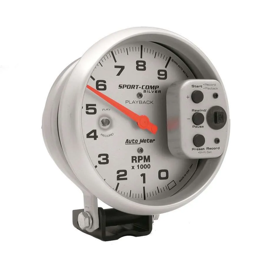 Tachometer – Ultra-Lite – 9000 RPM – Electric – Analog – 5 in Diameter – Pedestal Mount – Playback – Silver Face – Each