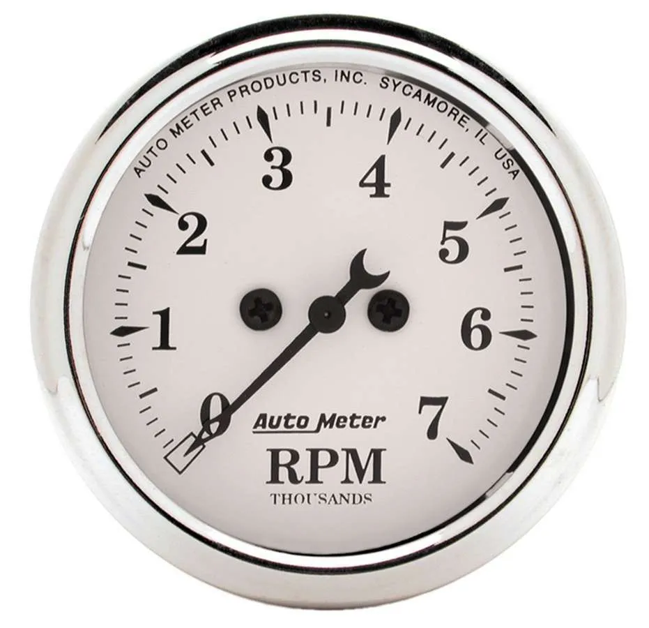 Tachometer – Old Tyme White – 7000 RPM – Electric – Analog – 2-1/16 in Diameter – Dash Mount – White Face – Each
