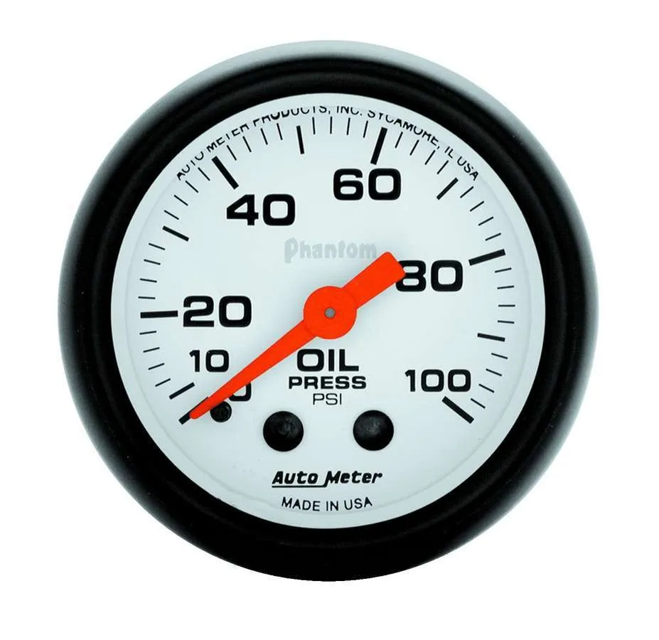 Oil Pressure Gauge – Phantom – 0-100 psi – Mechanical – Analog – Full Sweep – 2-1/16 in Diameter – White Face – Each