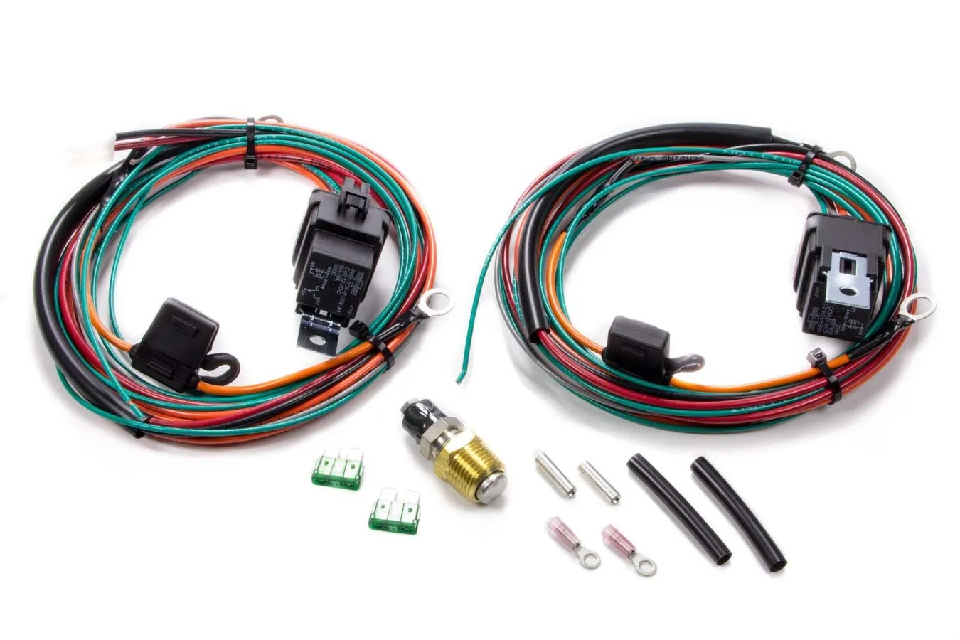 Fan Controller – 195 Degree F On – 175 Degree F Off – 3/8 in NPT Temperature Sensor – 1/2 in NPT Adapter – Harness – 40 amps Relay – Dual Fans – Kit