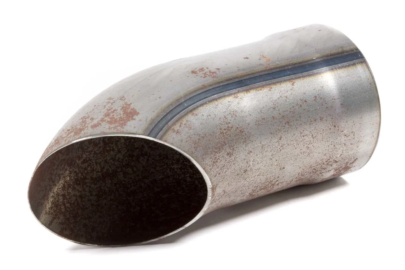 Exhaust Tip – Weld-On – 3.5 in Diameter – 6.5 in Long – Single Wall – Cut Edge – Angled Cut – Turndown Style – Steel – Natural – Each