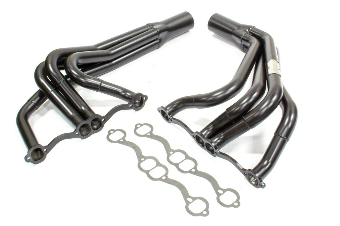 Headers – IMCA-UMP Modified – 1.75 to 1.875 in Primary – 3.5 in Collector – Gaskets Included – Steel – Black Paint – Small Block Chevy – Pair