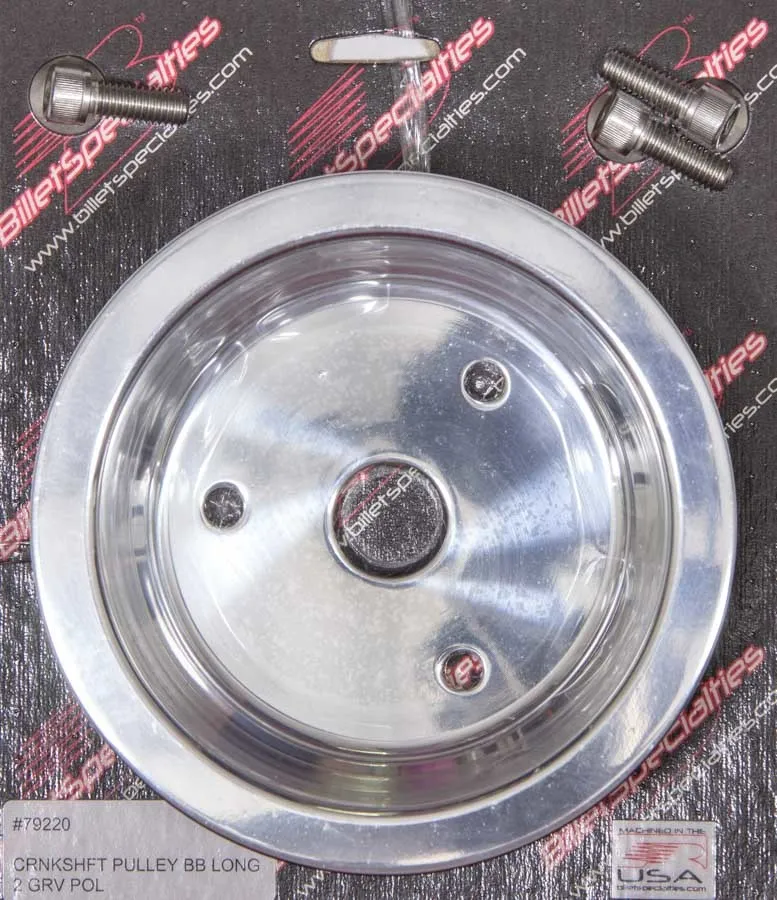 Crankshaft Pulley – V-Belt – 2 Groove – 6.438 in Diameter – Hardware Included – Billet Aluminum – Polished – Long Water Pump – Big Block Chevy – Each